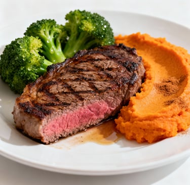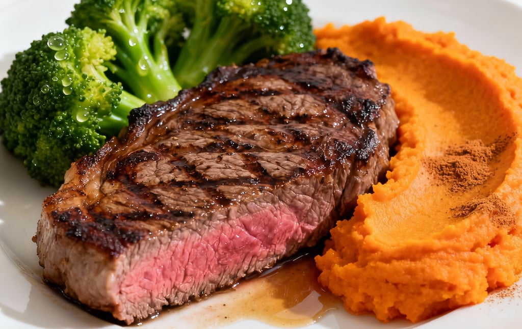 Filete de Ternera a la Plancha con Puré de Boniato y Brócoli al Vapor Fitness