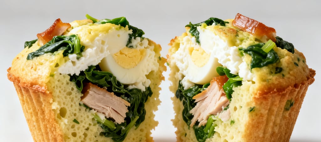 Proteínas (7.3g por muffin): Las claras, el pavo y el queso cottage ofrecen proteína magra, muy saciante y fundamental para preservar masa muscular en déficit calórico.