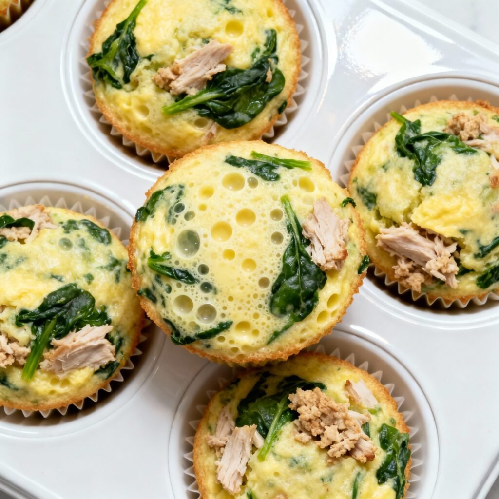 Muffins Fitness de Clara de Huevo, Espinaca y Pavo
