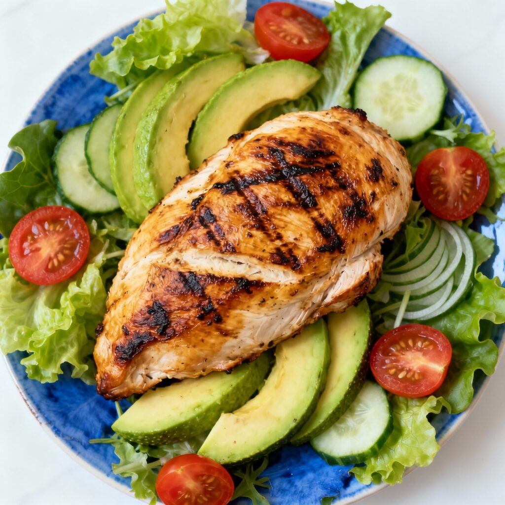 Ensalada de Pollo a la Plancha con Aguacate y Vegetales Frescos Fitness
